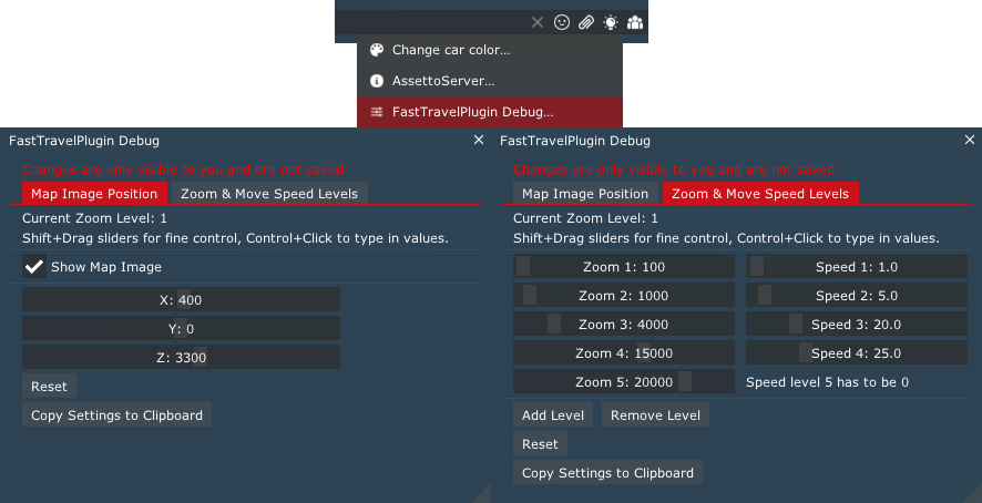 Keep in mind that changes made are not visible to other players until you apply them to the plugin_fast_travel_cfg.yml and restart the server.