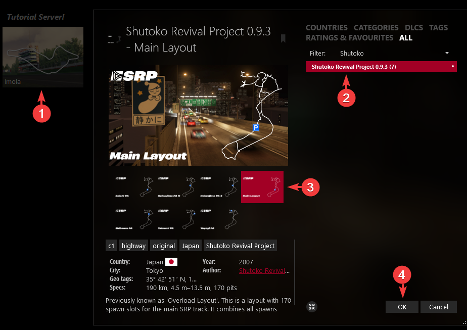 Click on the track preview image of Imola and change the track to Shutoko Revival Project - Main Layout.