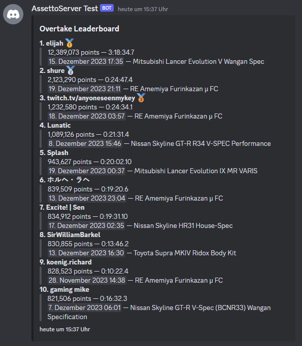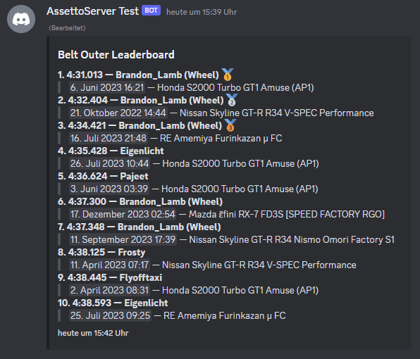 - Mapping AssettoServer user groups to Discord roles (example use case: Assign role based on Timing Leaderboard)