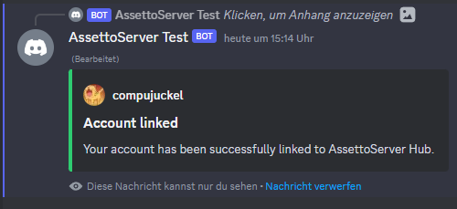 That's it! The next time you start AssettoServer Hub it will connect to Discord.